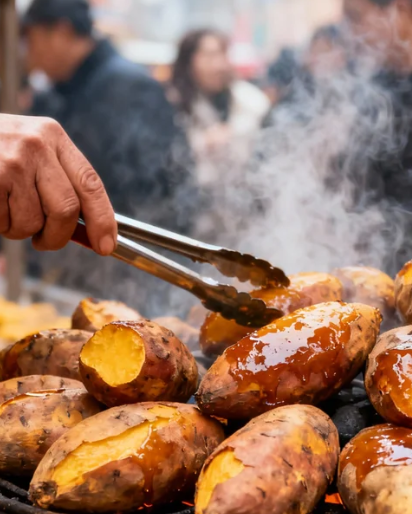 红薯暖炉:天寒地冻时,围着火炉烤红薯是朴素又温暖的享受。烤熟的红薯皮焦瓤软,热气腾腾,捧在手心可暖手,吃进肚里可暖身。这简单的甘甜,是几代人共同的冬日记忆。